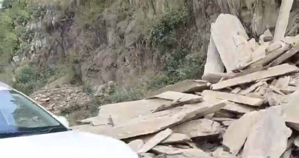 शनिवार सुबह उदयपुर-गोगुंदा हाइवे पर बड़ा हादसा टल गया। होटल कीर्ति राज के सामने विकेट मोड़ पर पहाड़ से अचानक चट्टान का हिस्सा टूटकर सड़क पर गिर पड़ा। अचानक गिरे मलबे से हाईवे पर अफरातफरी मच गई। उस वक्त दो कारें वहां से गुजर रही थीं, लेकिन चालक ने सूझबूझ दिखाते हुए समय रहते गाड़ी रोक दी। इससे एक बड़ी दुर्घटना टल गई।