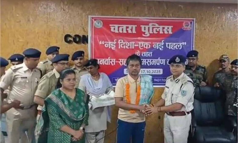 झारखंड में चतरा और पलामू जिलों के सीमावर्ती क्षेत्रों में सक्रिय खतरनाक टीएसपीसी नक्सली संगठन के दो बड़े एरिया कमांडर कुलदीप गंझू उफर् पत्थर (कुणाल) और रोहनी गंझू उफर् रोहनी पाहन ने शुक्रवार को चतरा में पुलिस के समक्ष आत्मसमर्पण कर दिया।