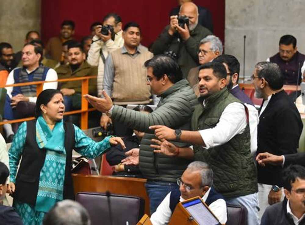 शून्यकाल के बाद विधायक घनश्याम ने ‘वंदे मातरम’ पर चर्चा का प्रस्ताव रखा, जिसे स्पीकर हरविन्द्र कल्याण ने स्वीकार कर लिया। लंच के बाद मुख्यमंत्री नायब सिंह सैनी ने चर्चा की शुरुअात की। सीएम ने ‘वंदे मातरम’ को सबके लिए वंदनीय, युवाओं के लिए प्रेरणादायक बताया और इसके ऐतिहासिक महत्व पर कहा कि एक दौर में पंडित जवाहरलाल नेहरू को भी इसकी गूंज से अपनी कुर्सी डोलती नजर आई। इतना सुनते ही कांग्रेस विधायक भड़क उठे। हुड्डा समेत कांग्रेस विधायक वेल में पहुंच गए, नारेबाजी शुरू हो गई और सदन की कार्यवाही ठप होने लगी।