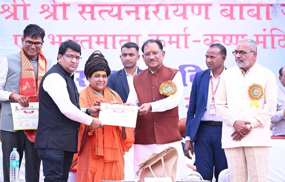 इससे पूर्व मुख्यमंत्री साय ने कोसमनारा स्थित श्री 108 सत्यनारायण बाबा जी एवं भक्त माता कर्मा-कृष्ण मंदिर में विधिवत पूजा-अर्चना कर प्रदेशवासियों की सुख-समृद्धि और खुशहाली की कामना की तथा महाशिवरात्रि की शुभकामनाएं दीं। कार्यक्रम को सम्बोधित करते हुए उन्होंने कहा कि 16 फरवरी 1998 से पूज्य सत्यनारायण बाबा खुले आकाश के नीचे निरंतर तपस्या में लीन हैं। तीनों ऋतुओं में 28 वर्षों से अधिक समय तक साधना करना अत्यंत अद्वितीय और प्रेरणादायक है। यह धाम सामाजिक समरसता, आस्था और भाईचारे का सशक्त प्रतीक बन चुका है।