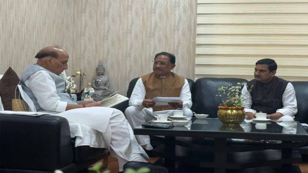 छत्तीसगढ़ के मुख्यमंत्री विष्णुदेव साय ने आज केंद्रीय रक्षा मंत्री राजनाथ सिंह से मुलाकात कर बिलासा देवी केंवट एयरपोर्ट, चकरभाठा (बिलासपुर) के विस्तारीकरण से संबंधित विषयों पर विस्तृत चर्चा की. इस महत्वपूर्ण बैठक में केंद्रीय आवासन एवं शहरी कार्य राज्य मंत्री और बिलासपुर के सांसद तोखन साहू भी शामिल रहे.