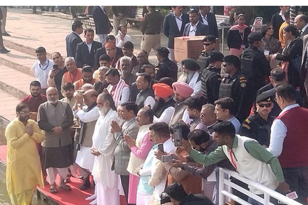 अंतरराष्ट्रीय गीता महोत्सव के पावन अवसर पर केंद्रीय रक्षा मंत्री राजनाथ सिंह ने सोमवार को कुरुक्षेत्र पहुंचे। यहां उन्होंने पवित्र ब्रह्म सरोवर पर तीर्थ पूजन किया। मंत्रोच्चारण और शंखनाद के बीच उन्होंने सरोवर के तट पर पूजन-अर्चना की, जो इस धार्मिक-सांस्कृतिक उत्सव की शुरुआत का प्रतीक बना।