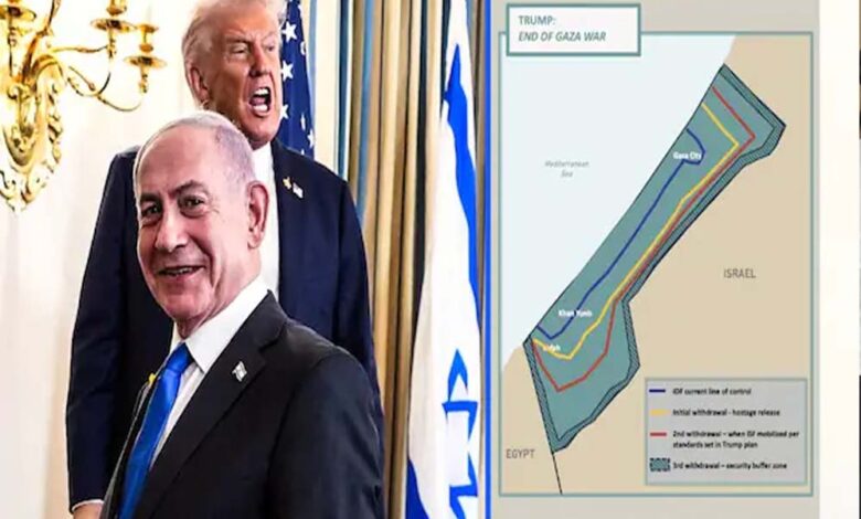 गाज़ा का बदला नक्शा: ट्रंप की योजना में इज़रायल बॉर्डर पर बफर ज़ोन, जानिए ब्लू-येलो-रेड लाइन का मतलब