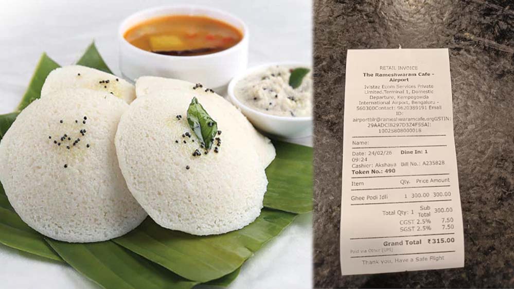 यह पूरा मामला तब चर्चा में आया जब एक यात्री ने सोशल मीडिया प्लेटफॉर्म रेडिट पर अपने खाने का बिल शेयर किया. यात्री ने बताया कि वह बेंगलुरु एयरपोर्ट पर स्थित रामेश्वरम कैफे गया था. वहां उसने एक प्लेट घी पोड़ी इडली ऑर्डर की, जिसका बिल 315 रुपये आया. यात्री ने इस बिल की रसीद पोस्ट करते हुए लिखा कि शहर के अंदर इसी कैफे के दूसरे आउटलेट्स पर इसी इडली की कीमत लगभग 90 रुपये होती है.