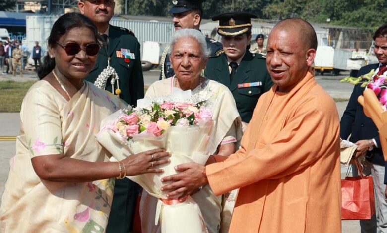 लखनऊ में विभिन्न कार्यक्रमों में हिस्सा लेने राष्ट्रपति द्रौपदी मुर्मु शुक्रवार को लखनऊ पहुंचीं। यहां एयरपोर्ट पर मुख्यमंत्री योगी आदित्यनाथ व राज्यपाल आनंदी बेन पटेल ने राष्ट्रपति का स्वागत किया।