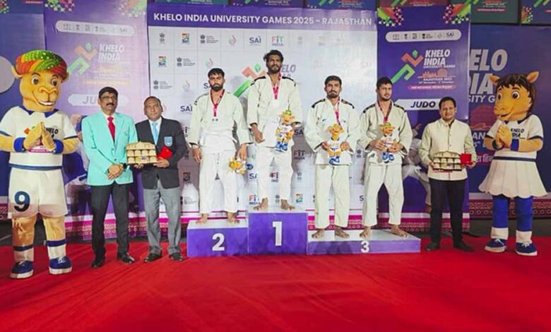 लेक सिटी उदयपुर में चल रहे खेलो इंडिया यूनिवर्सिटी गेम्स के दूसरे दिन जूडो मुकाबलों में खिलाड़ियों ने शानदार प्रदर्शन किया। एमबी स्पोर्ट्स कॉम्प्लेक्स में स्थित अटल बिहारी वाजपेयी इंडोर स्टेडियम में आयोजित प्रतियोगिताओं में विभिन्न विश्वविद्यालयों के पुरुष और महिला खिलाड़ियों ने अपने-अपने भार वर्गों में दमदार खेल दिखाया।