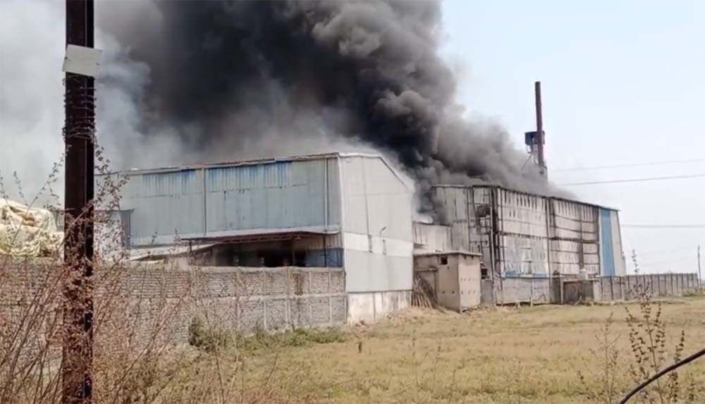 राइस मिल में लगी भीषण आग, काबू पाने में जुटी फायर ब्रिगेड और स्थानीय लोग