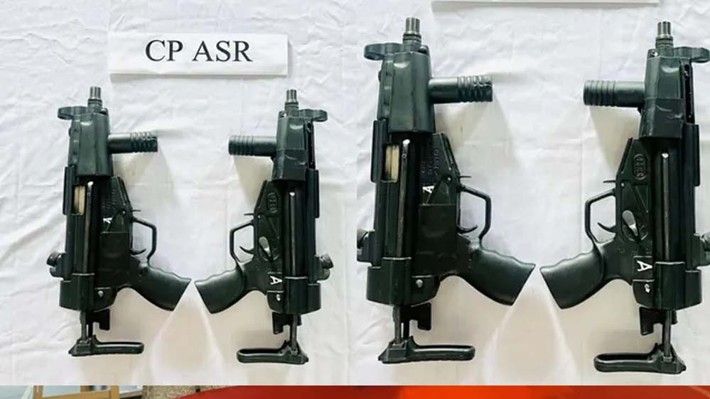 अमृतसर पुलिस कमिश्नर रेट में नाकाबंदी के दौरान रविवार की सुबह दो सब मशीन गन बरामद की है। पता चला है कि दो आरोपित पुलिस को गच्चा देकर नाकाबंदी से ही फरार हो गए।
