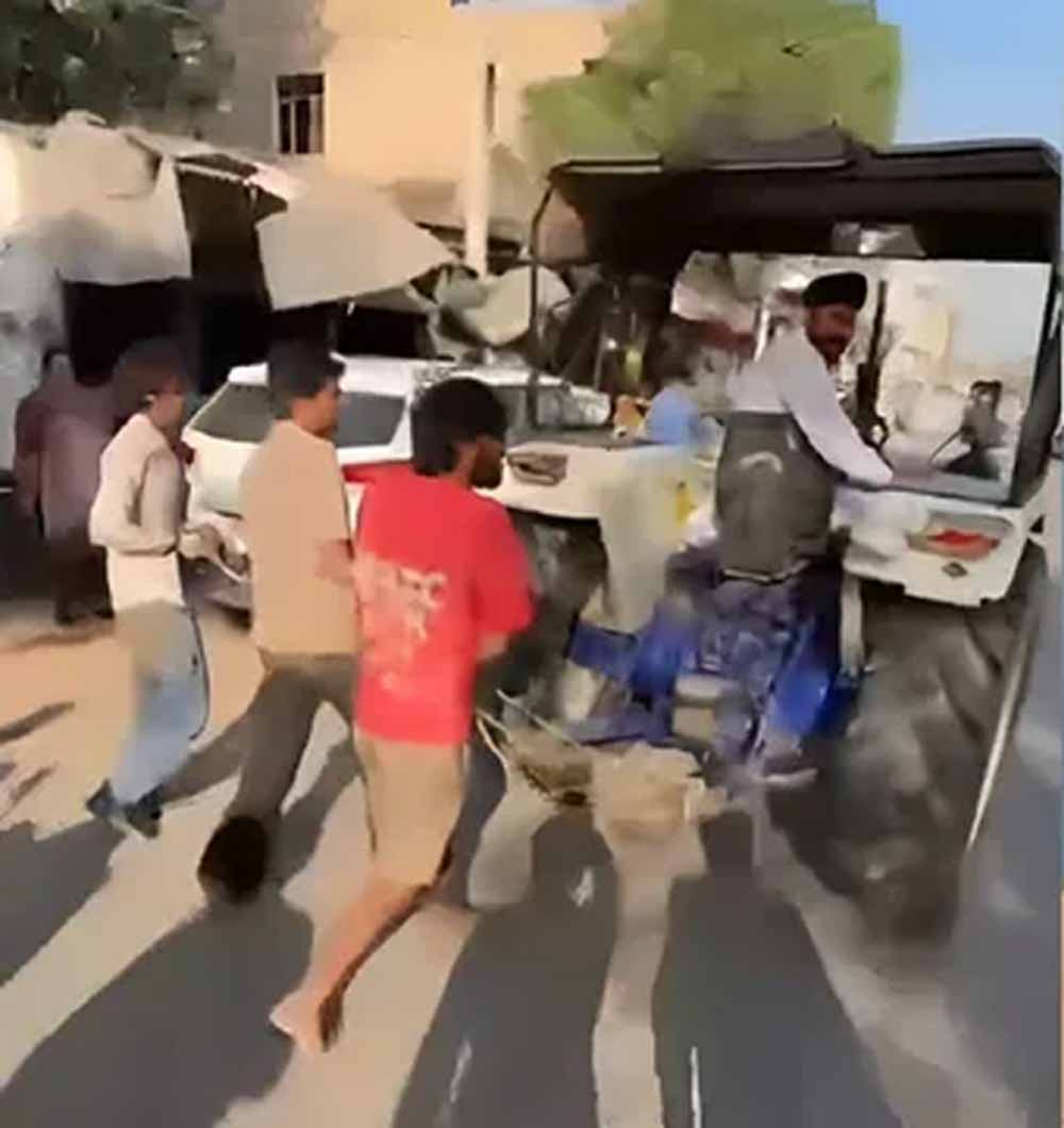 ट्रैक्टर के पीछे चक्कर लगाते समय तीनों की लाठियों से मारपीट भी की गई, जिसकी दो मिनट 21 सेकेंड की वीडियो इंटरनेट मीडिया पर तेजी से प्रसारित हुई। वीडियो वायरल होते ही पुलिस चौकी नौशहरा पन्नुआं के प्रभारी सलविंदर सिंह मौके पर पहुंचे और तीनों लुटेरों को हिरासत में लिया। उनके कब्जे से एक दातर भी बरामद हुआ। इस बारे में डीएसपी (आई) जगजीत सिंह चहल का कहना है कि थाना सरहाली के प्रभारी बिंदरजीत सिंह को मामले की सारी जांच सौंपी गई है। हिरासत में लिए गए लुटेरों की पहचान लवदीप सिंह, जगरूप सिंह व गुरप्रीत सिंह निवासी सरहाली के तौर पर हुई है। जगरूप सिंह के खिलाफ चोरी और लूटपाट के पहले भी मामले दर्ज हैं। ट्रैक्टर के पीछे तीनों को बांधकर मारपीट करने की अभी जांच जारी है।