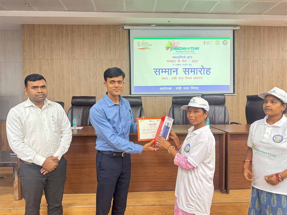 झारखंड में रांची नगर निगम ने 17 सितंबर से चलाए गए 'स्वच्छता ही सेवा' कार्यक्रम का समापन बीते गुरुवार को राष्ट्रपिता महात्मा गांधी एवं भारत रत्न लाल बहादुर शास्त्री की जयंती के शुभ अवसर पर 'सफाई मित्र सम्मान समारोह' के साथ किया।