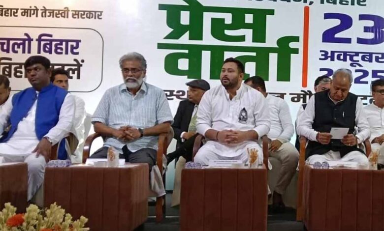 पटना में गुरुवार को महागठबंधन की साझा प्रेस कॉन्फ्रेंस को संबोधित करते हुए राजस्थान के पूर्व मुख्यमंत्री और कांग्रेस के वरीय नेता अशोक गहलोत ने पार्टी की ओर से बात रखी। गहलोत ने नेता प्रतिपक्ष को बिहार चुनाव में महागठबंधन का सीएम फेस घोषित करते हुए कहा, “तेजस्वी ने पिछली बार भी कमाल किया था। मगर मामूली वोटों के अंतर से उनकी सरकार बनते हुए रह गई थी।” उन्होंने भारतीय जनता पार्टी (बीजेपी) और एनडीए पर साम, दाम, दंड, भेद के बल पर तेजस्वी को मुख्यमंत्री बनने से रोकने का भी आरोप लगाया। अशोक गहलोत ने कहा कि मीडिया की ओर से बार-बार सीएम फेस के बारे में सवाल किया जा रहा था, इसलिए आज घोषणा करनी पड़ी।