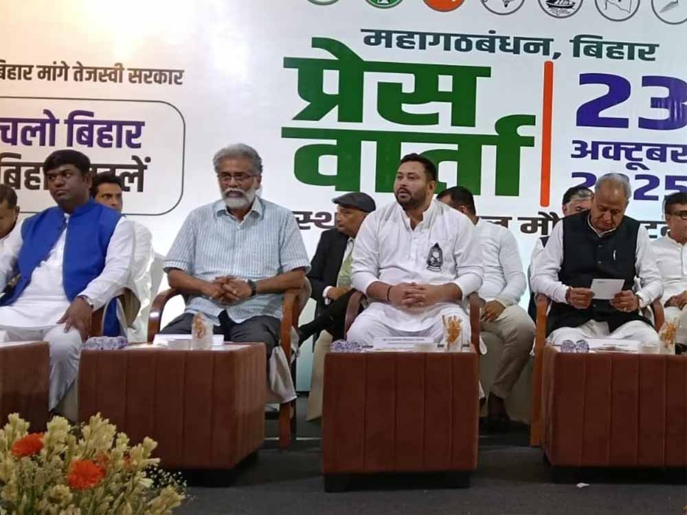 पटना में गुरुवार को महागठबंधन की साझा प्रेस कॉन्फ्रेंस को संबोधित करते हुए राजस्थान के पूर्व मुख्यमंत्री और कांग्रेस के वरीय नेता अशोक गहलोत ने पार्टी की ओर से बात रखी। गहलोत ने नेता प्रतिपक्ष को बिहार चुनाव में महागठबंधन का सीएम फेस घोषित करते हुए कहा, “तेजस्वी ने पिछली बार भी कमाल किया था। मगर मामूली वोटों के अंतर से उनकी सरकार बनते हुए रह गई थी।” उन्होंने भारतीय जनता पार्टी (बीजेपी) और एनडीए पर साम, दाम, दंड, भेद के बल पर तेजस्वी को मुख्यमंत्री बनने से रोकने का भी आरोप लगाया। अशोक गहलोत ने कहा कि मीडिया की ओर से बार-बार सीएम फेस के बारे में सवाल किया जा रहा था, इसलिए आज घोषणा करनी पड़ी।