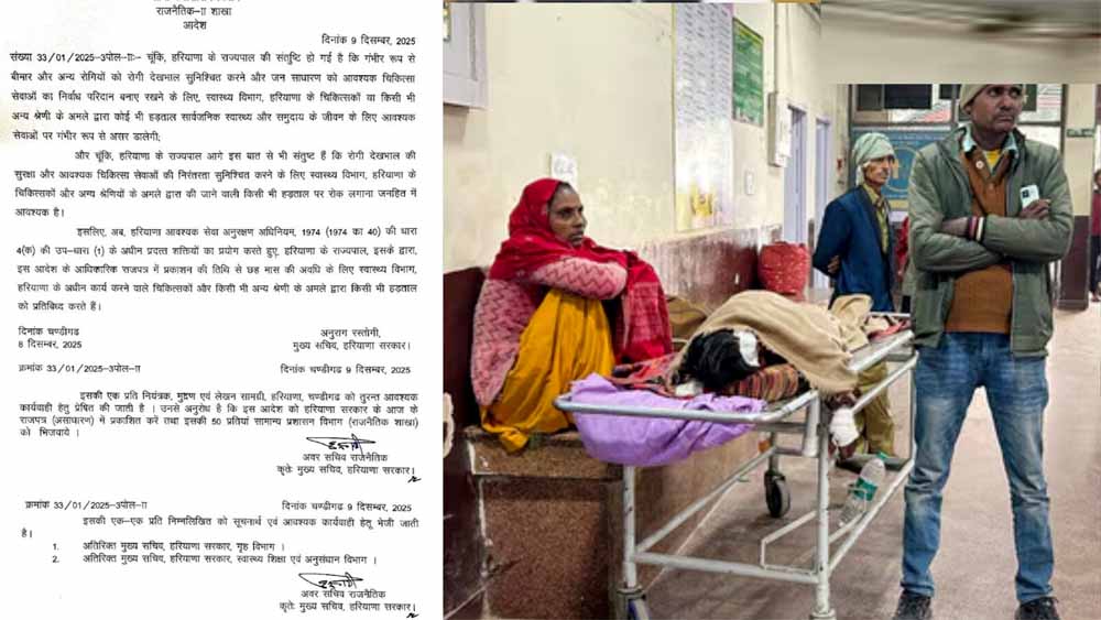 हरियाणा में सरकारी अस्पतालों और स्वास्थ्य केंद्रों के डॉक्टरों की दो दिन की हड़ताल को अब अनिश्चितकाल तक बढ़ाने के ऐलान पर सरकार ने कड़ा रुख अपनाया है। सरकार ने राज्य में आवश्यक सेवा संरक्षण अधिनियम (एस्मा) लागू कर दिया है। आदेश में कहा गया है कि गंभीर रूप से बीमार मरीजों और अन्य लोगों की देखभाल के लिए स्वास्थ्य विभाग के डॉक्टरों व कर्मचारियों को बिना किसी रुकावट के अपनी ड्यूटी जारी रखनी होगी, क्योंकि हड़ताल से जनता के स्वास्थ्य और जीवन पर गंभीर खतरा है। राज्यपाल ने धारा 4(क)(1) के तहत स्पष्ट किया है कि अगले छह महीनों तक स्वास्थ्य विभाग के सभी डॉक्टर और कर्मचारी किसी भी तरह की हड़ताल नहीं कर सकेंगे।